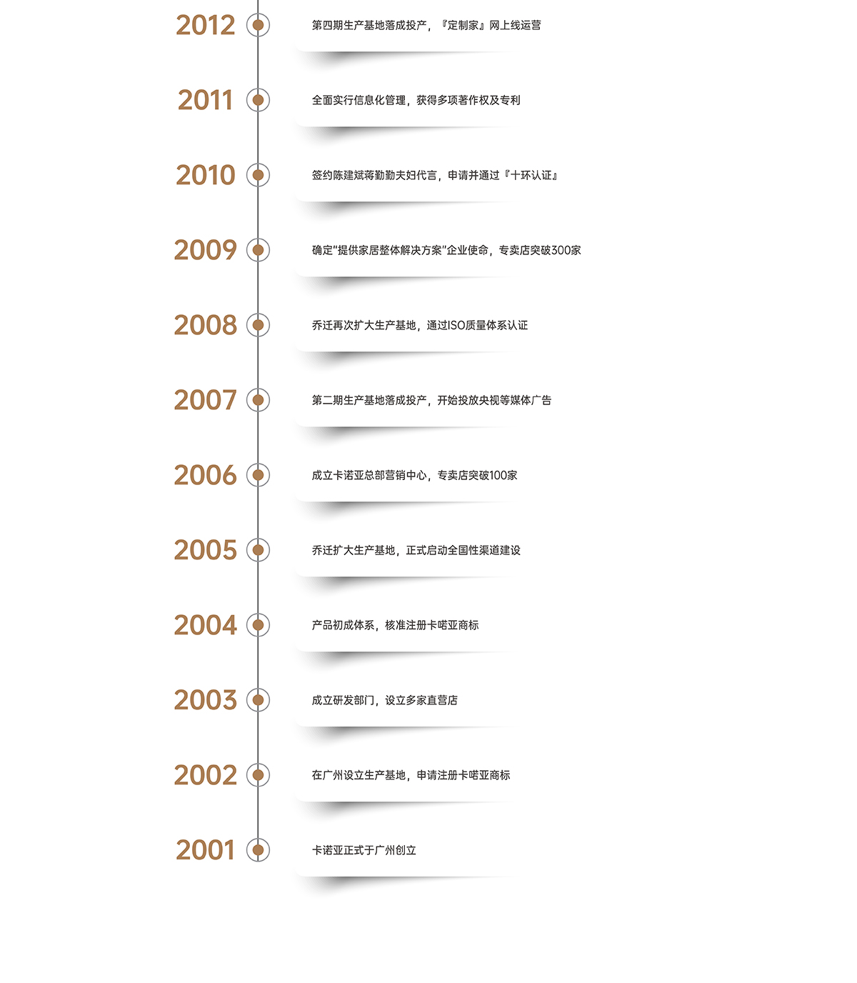卡諾亞是集研發、銷售、生產、服務于一體的卡諾亞(Knoya)、羅亞雙品牌運營的高新技術企業。卡諾亞創立于2001年3月,現擁有廣東清遠、廣東廣州兩大生產基地,以及國際領先的信息化、智能化生產線,還擁有家居研究院及商學院兩大“院系”。在產品的研發上,始終堅持科學、創新、前沿,目前,已榮獲各類專利及著作權200多項。